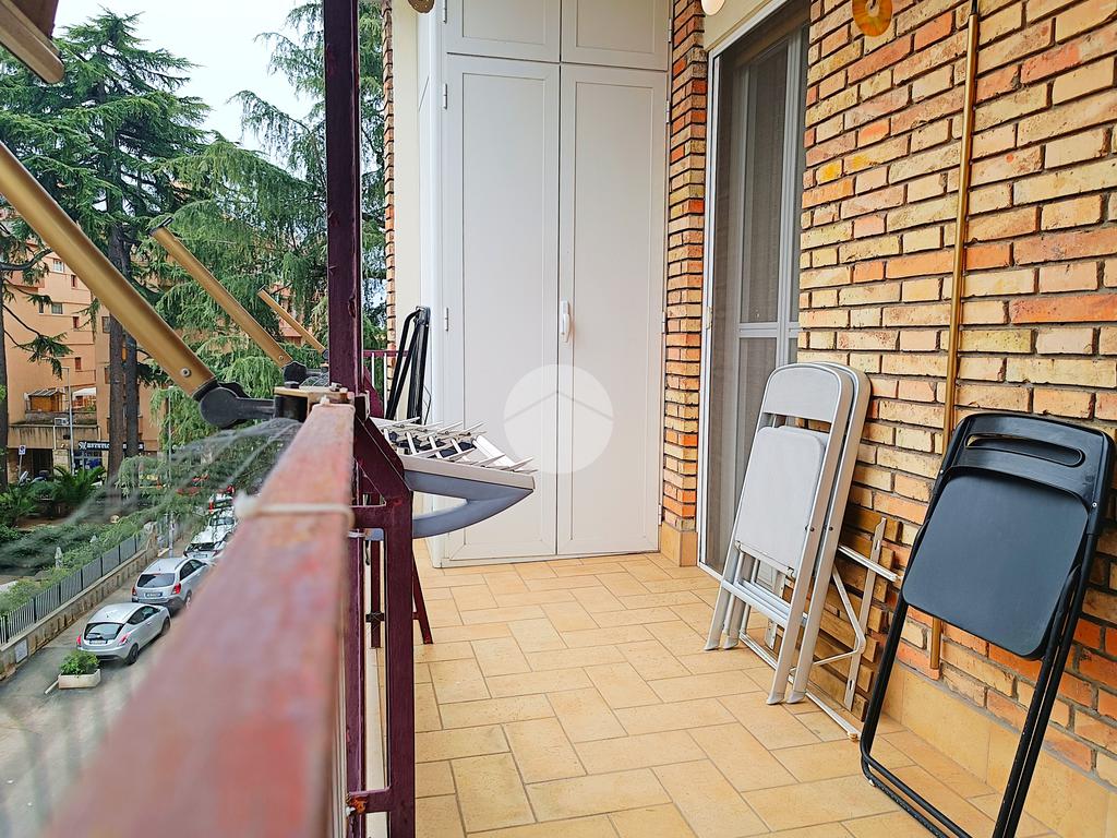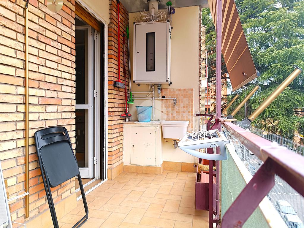 Qualche passo in più e si accede al balcone: a disposizione non solo della camera da letto ma anche della cucina, questo spazio consente un tavolo o una sdraio all’aperto, godendo dell’ariosità di un piano medio alto che mantiene la giusta distanza con il condominio vicino.