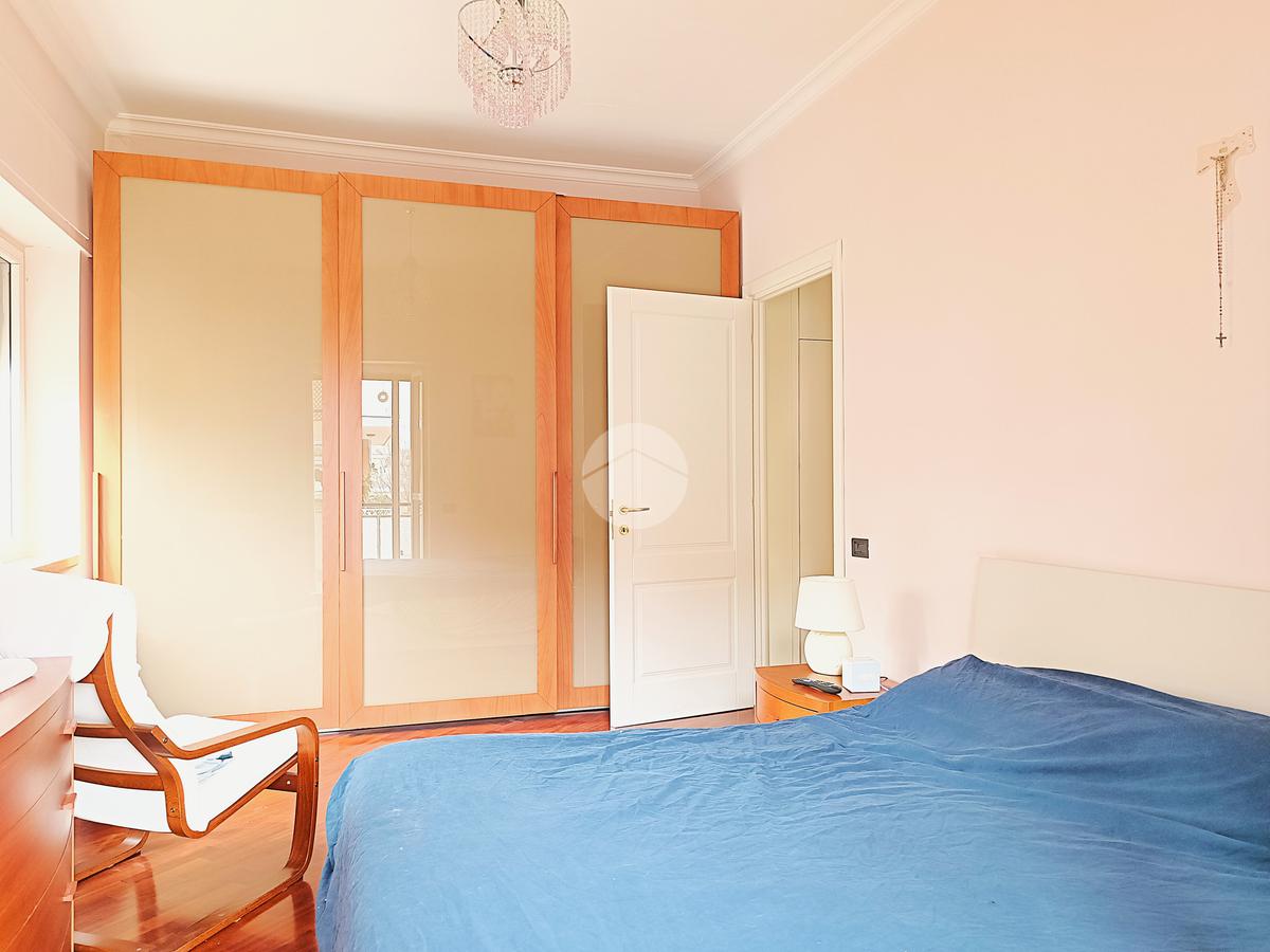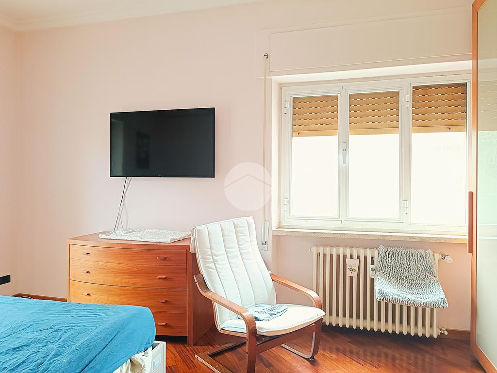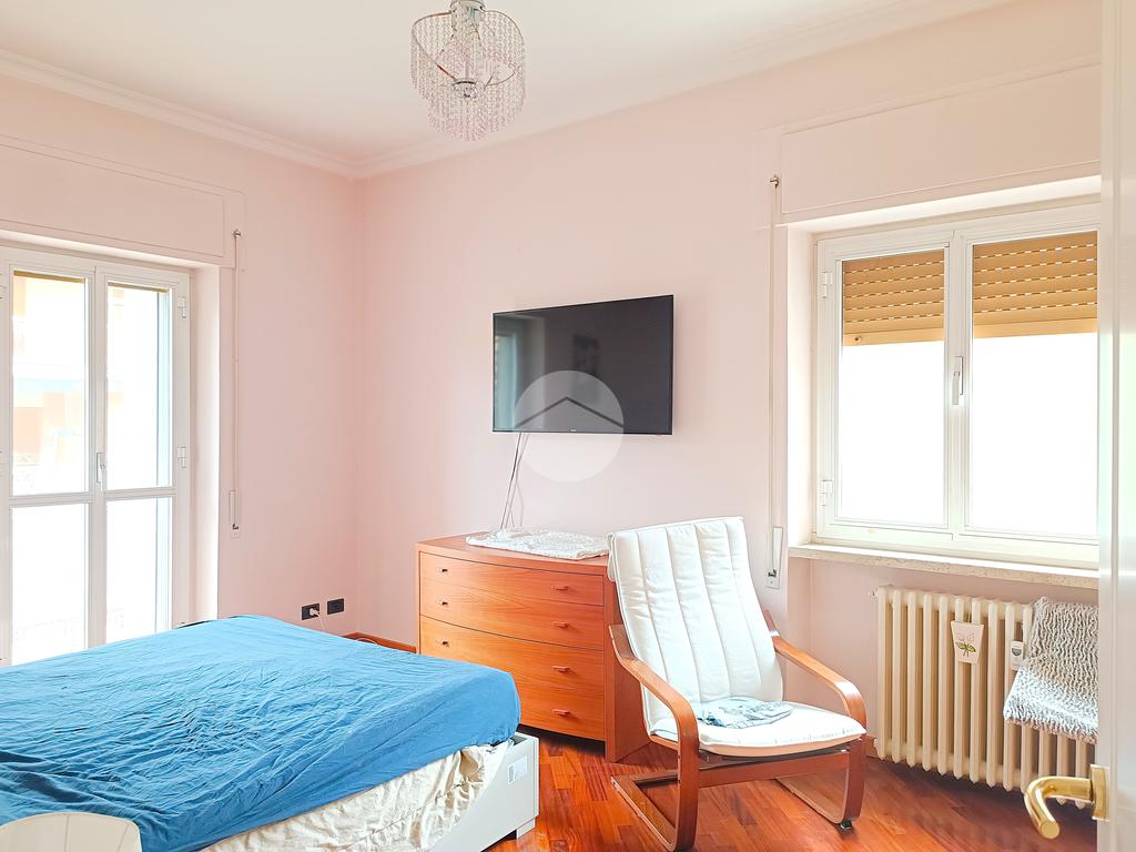 Proseguendo, la camera da letto matrimoniale gode di luce diffusa grazie alla presenza di ben due finestre dalla doppia esposizione sud-est, da cui penetra non solo luce ma anche calore.