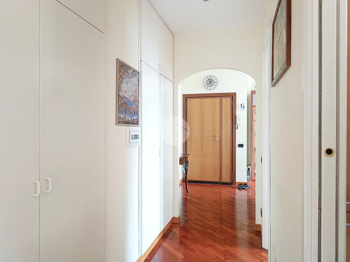 La soluzione presenta pavimentazione in parquet, infissi in pvc con doppi vetri, zanzariere, riscaldamento centralizzato e condizionamento autonomo.