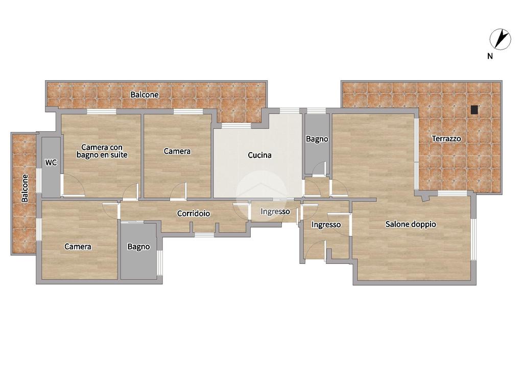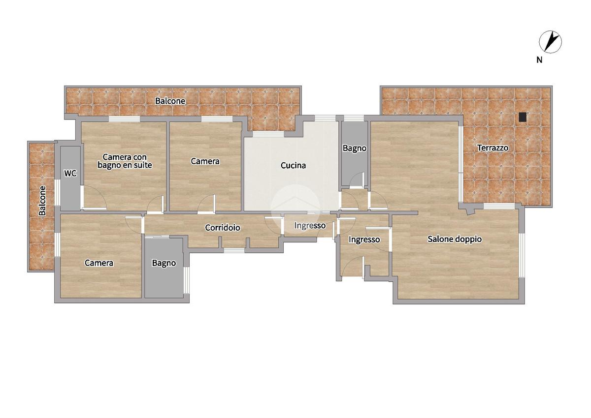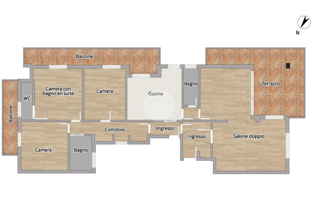 Vi sveliamo, Signori, una affascinante soluzione che non richiede preamboli: 178 mq di abitazione ristrutturata con terrazzo e due balconi vivibili, con annesso box auto di proprietà.