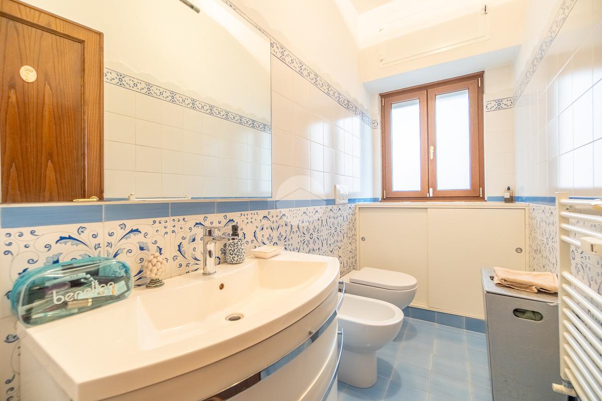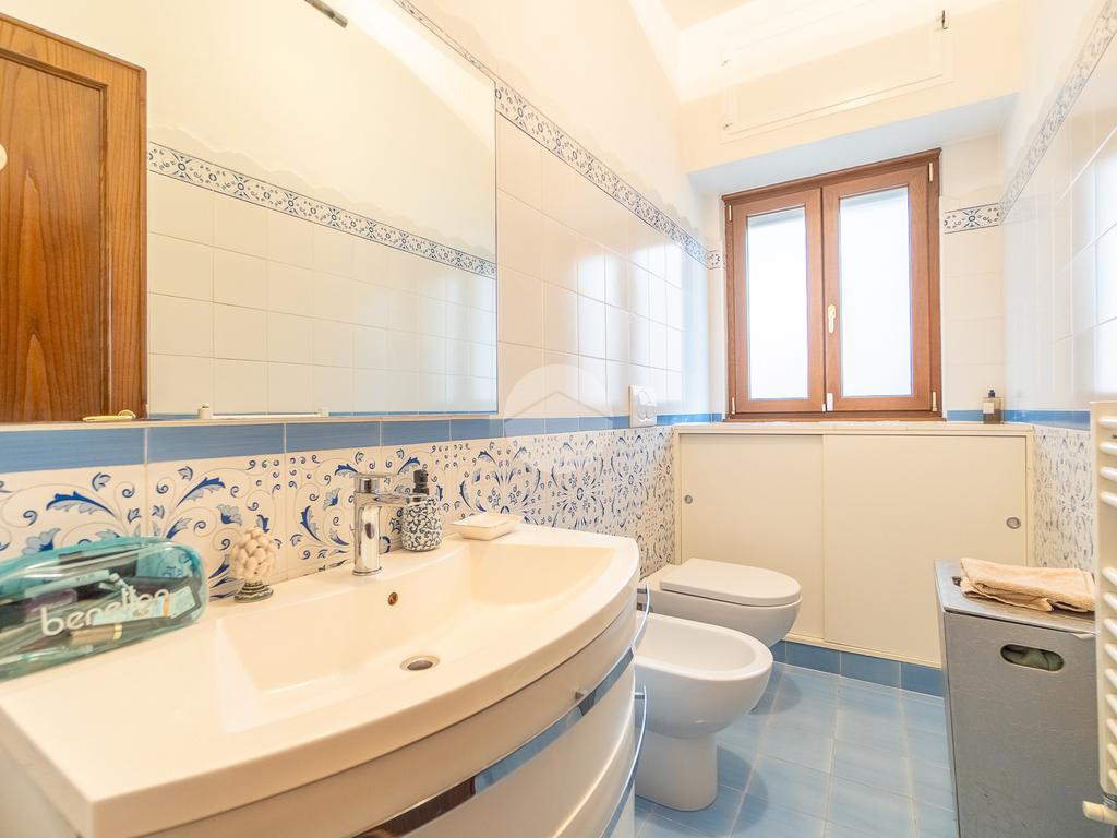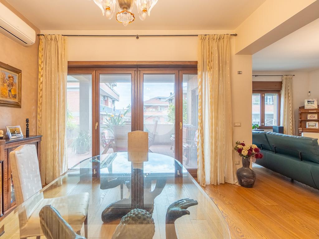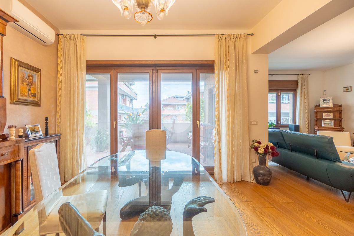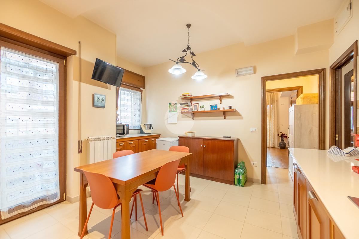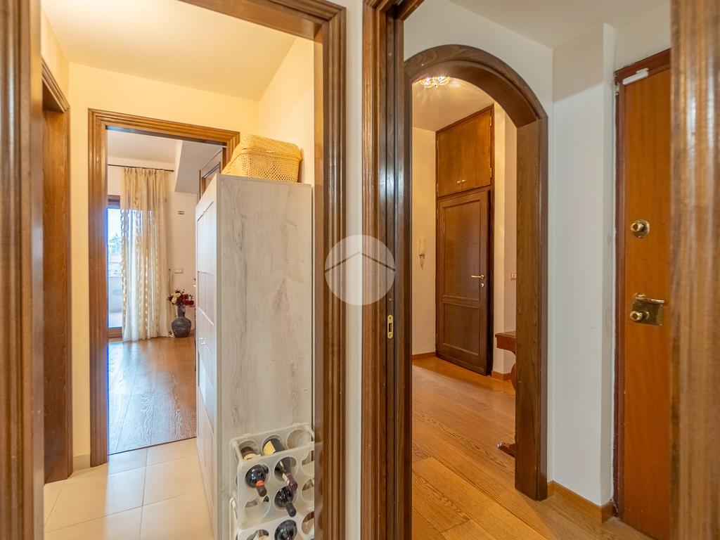 La casa si presenta totalmente ristrutturata, dotata di doppio ingresso e completa di porta blindata, riscaldamento centralizzato, condizionatori, infissi con doppi vetri, impianto di allarme ed accogliente pavimentazione in parquet di rovere. Inoltre, gode di tripla esposizione sud-est-ovest con luminosità diffusa dal sorgere del sole fino al suo tramonto.