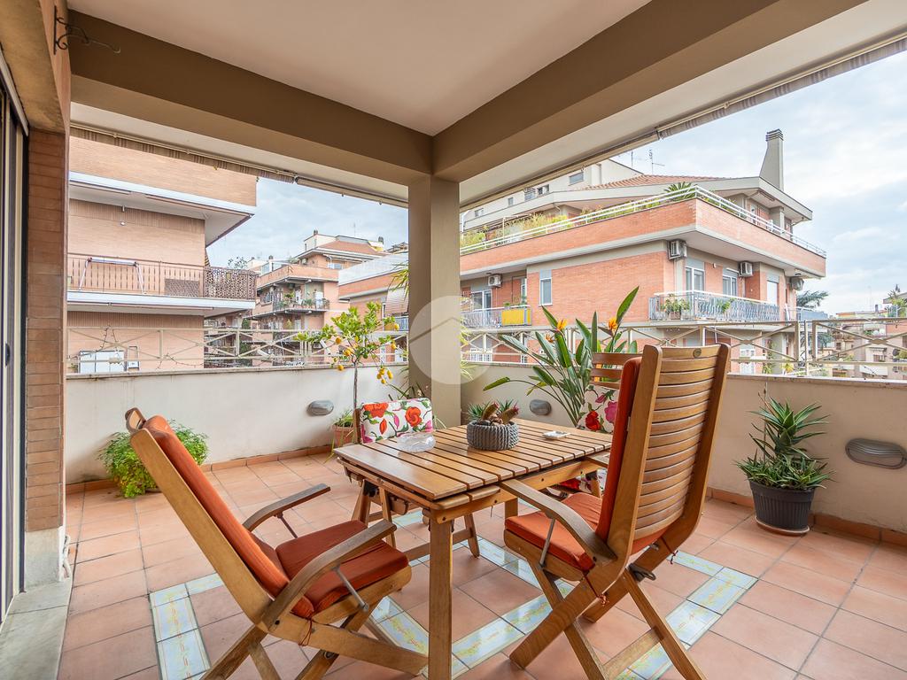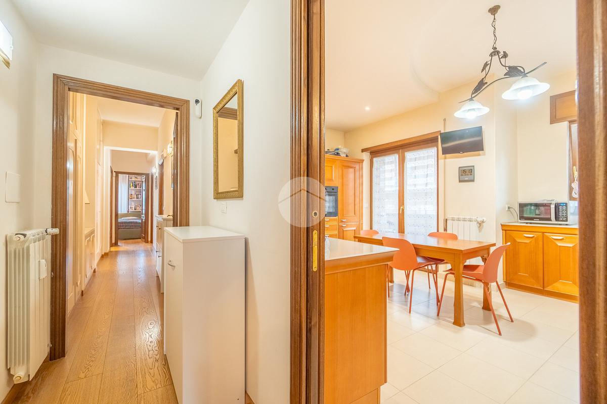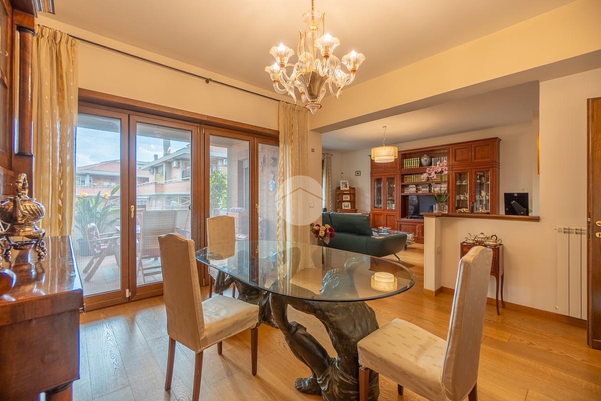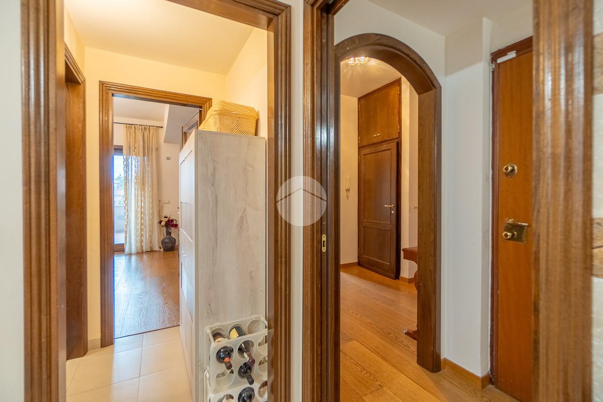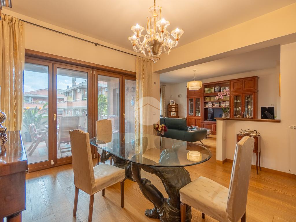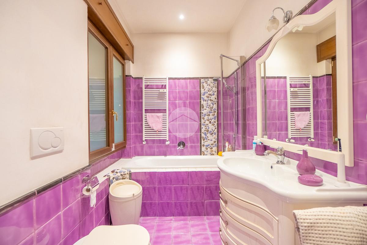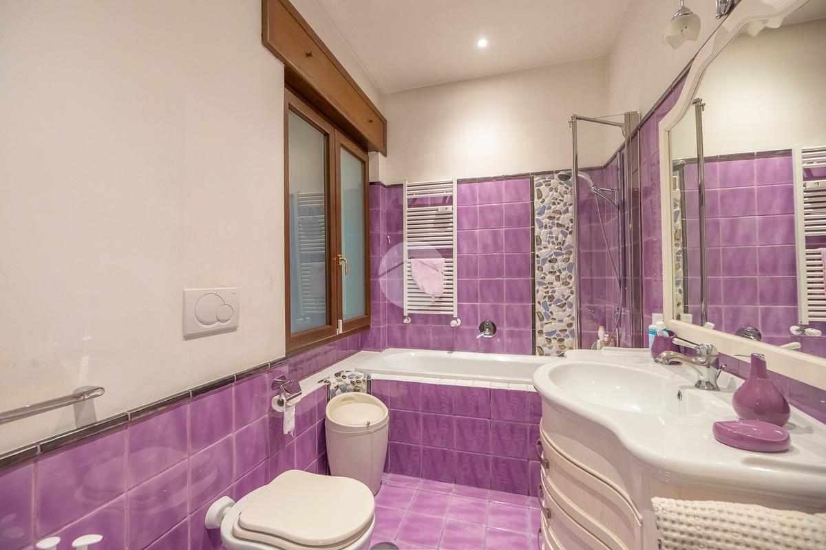 La casa si presenta totalmente ristrutturata, dotata di doppio ingresso e completa di porta blindata, riscaldamento centralizzato, condizionatori, infissi con doppi vetri, impianto di allarme ed accogliente pavimentazione in parquet di rovere. Inoltre, gode di tripla esposizione sud-est-ovest con luminosità diffusa dal sorgere del sole fino al suo tramonto.