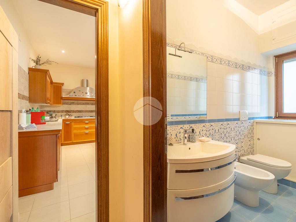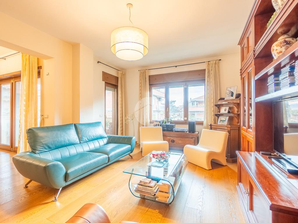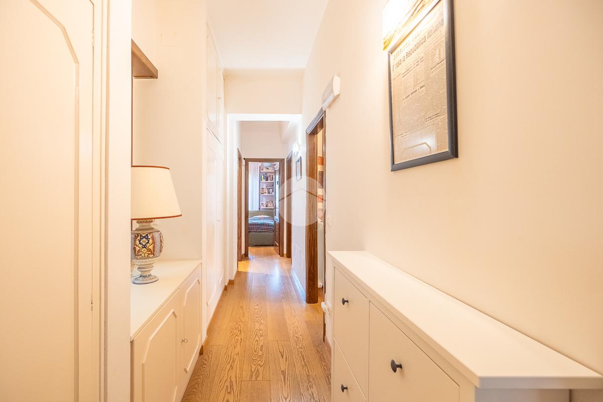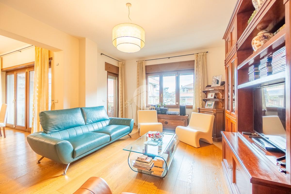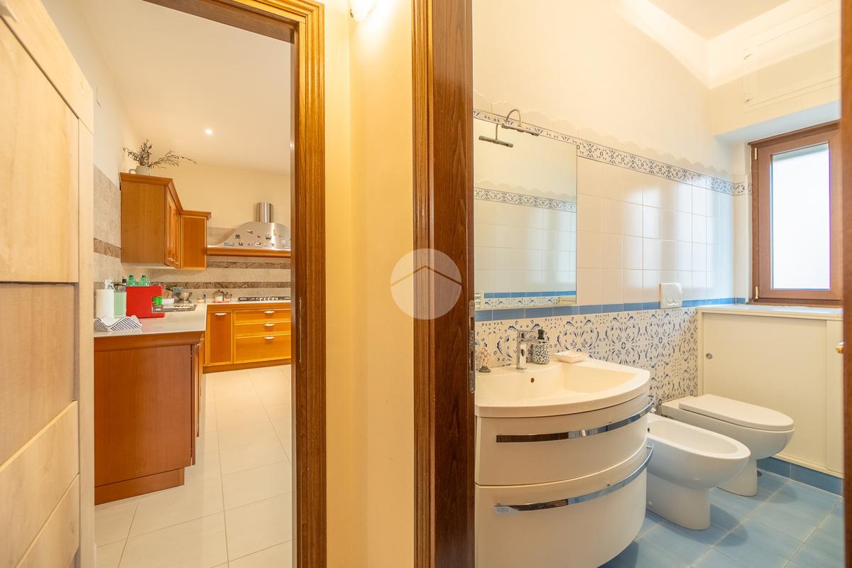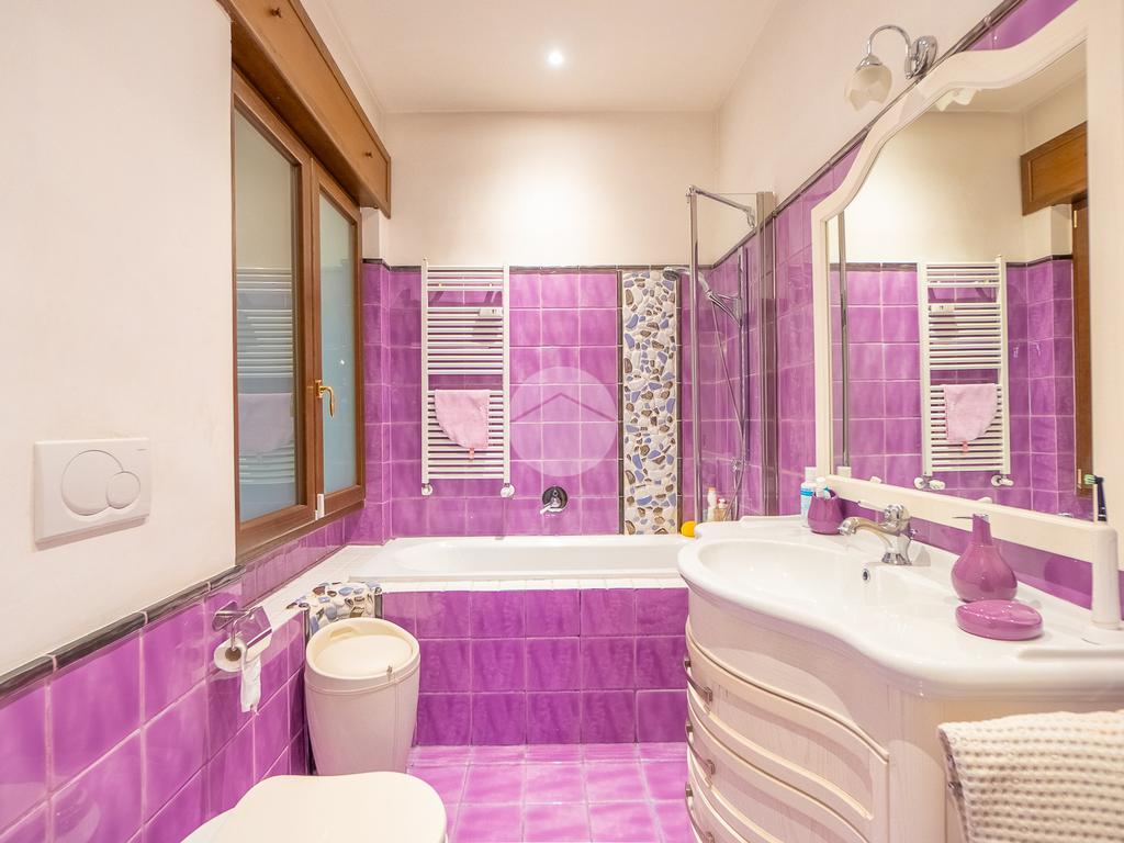 La casa si presenta totalmente ristrutturata, dotata di doppio ingresso e completa di porta blindata, riscaldamento centralizzato, condizionatori, infissi con doppi vetri, impianto di allarme ed accogliente pavimentazione in parquet di rovere. Inoltre, gode di tripla esposizione sud-est-ovest con luminosità diffusa dal sorgere del sole fino al suo tramonto.