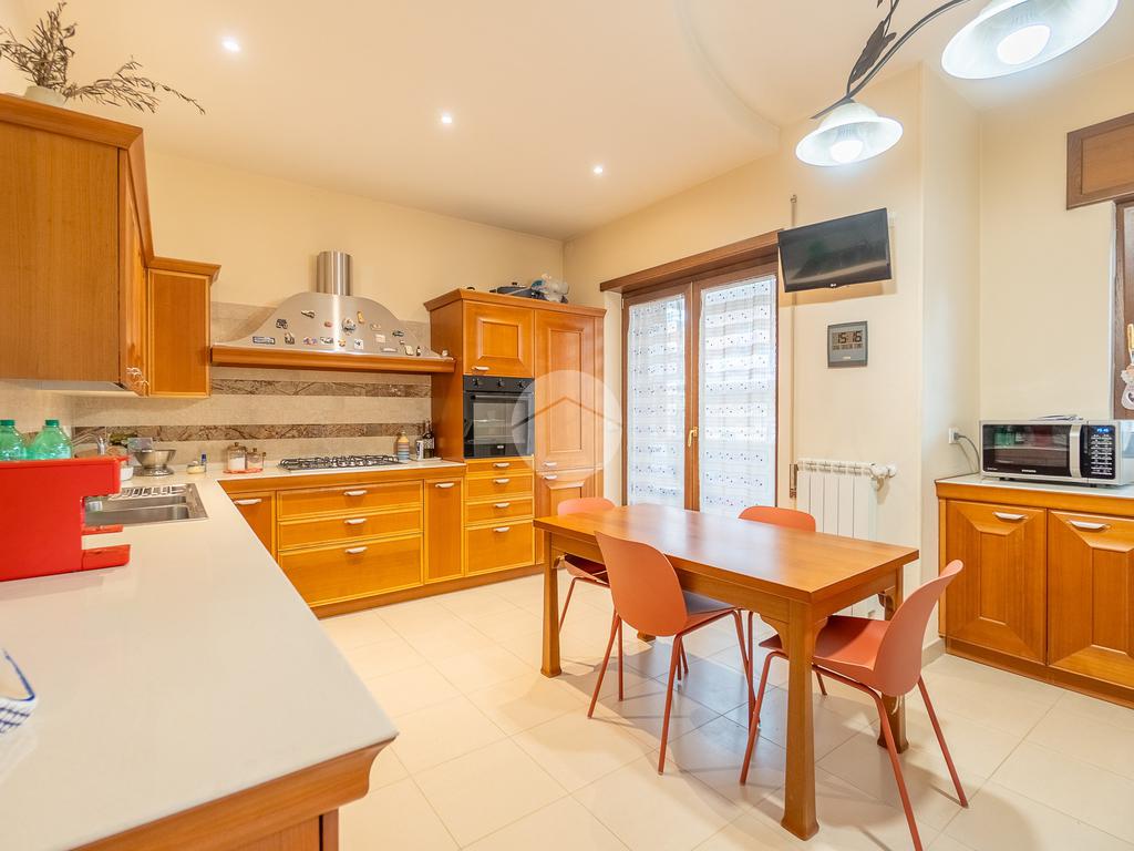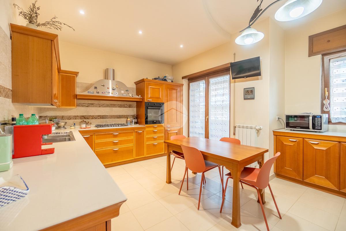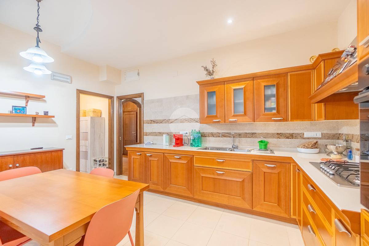 A completare la zona giorno, la cucina: grazie alla generosità del suo spazio, è in grado di riunire intorno alla tavola l’intera famiglia.