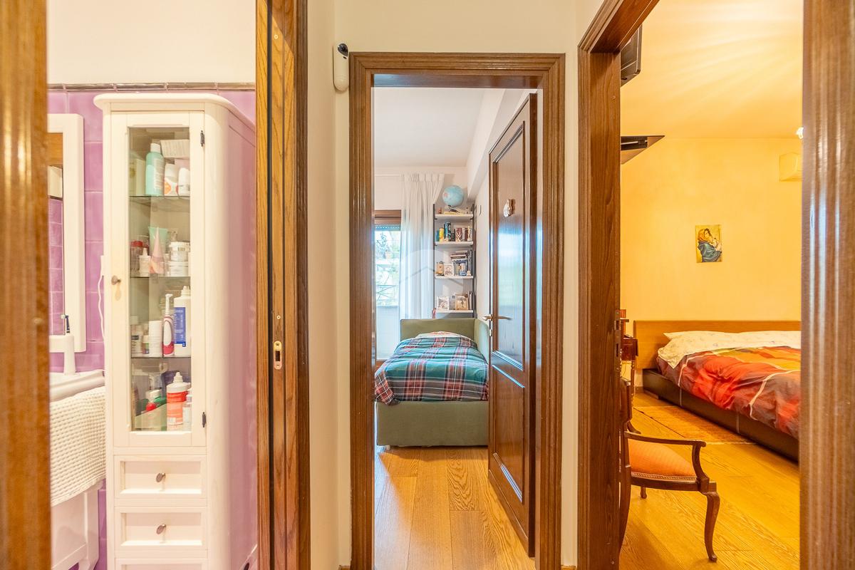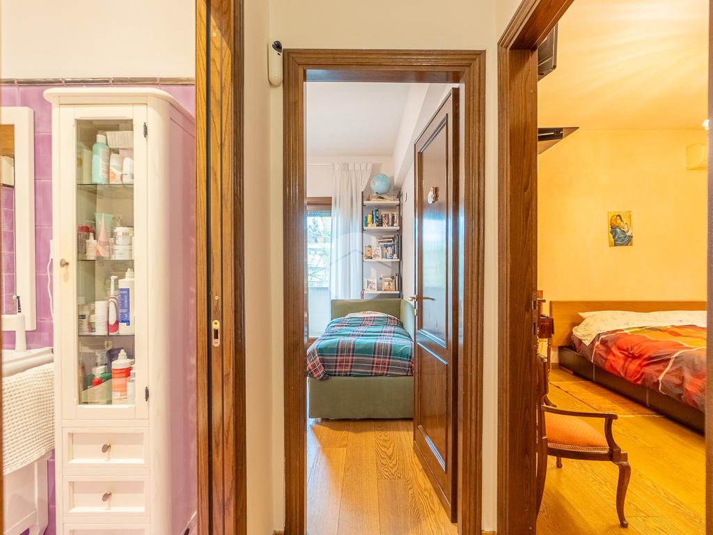 Proseguendo, la zona notte di casa è composta da tre comode camere da letto, di cui una padronale con bagno en suite completo di finestra e doccia e un ulteriore servizio finestrato con vasca a disposizione di questi ambienti. Tutte le camere da letto sono servite da balconi.